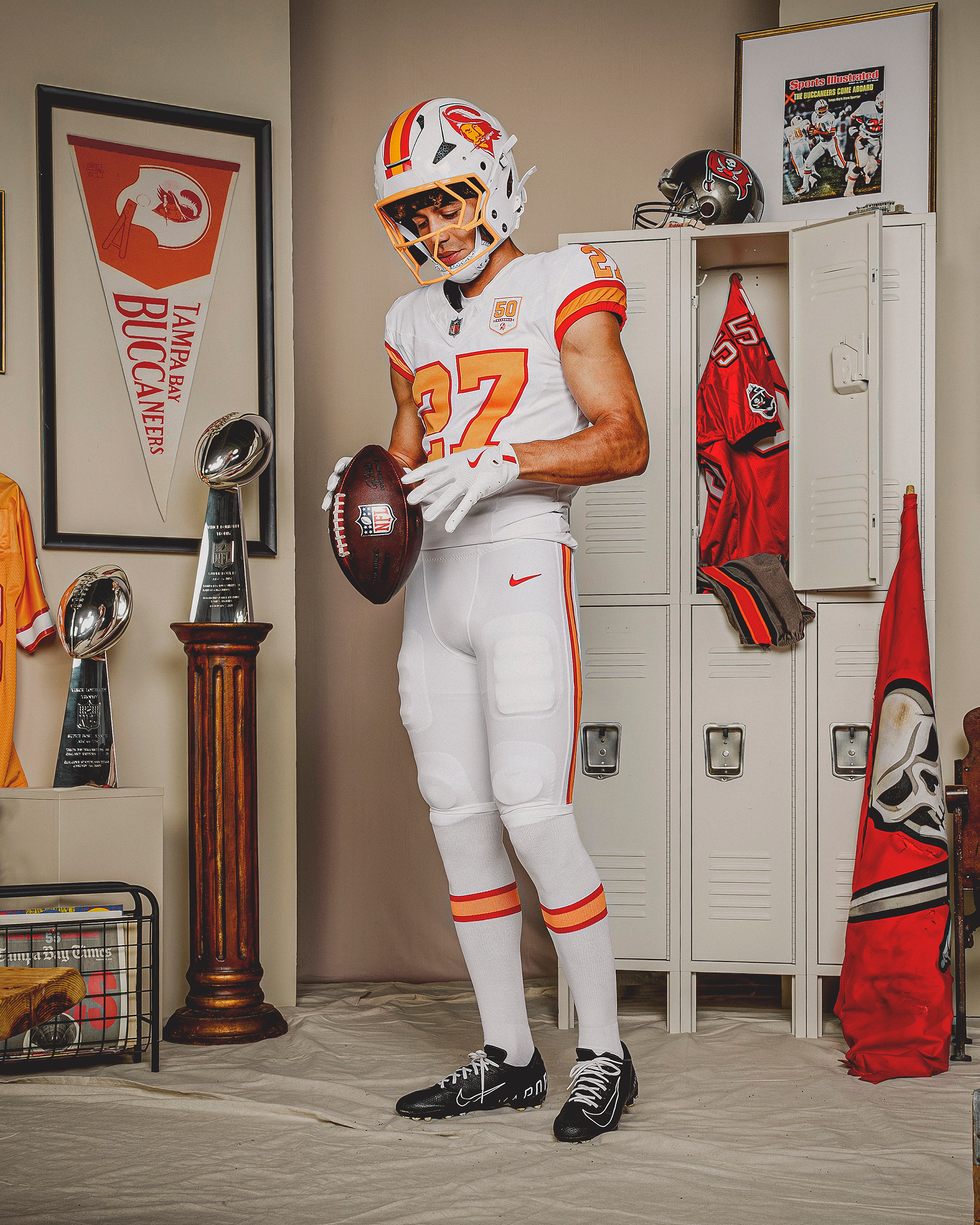 The Tampa Bay Buccaneers launched the '76 Legacy Uniform in July 2025. The uniform was launched in celebration of the Buccaneers' 50th season. I assisted our set designer Amy Malizia with decorating the set for the shoot. I directed the photoshoot while photographing as well. I have included the promotional piece that was created by our design team utilizing the imagery as well as the imagery below.